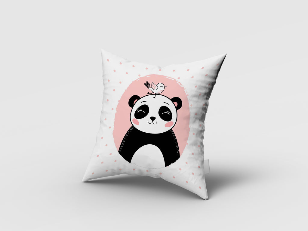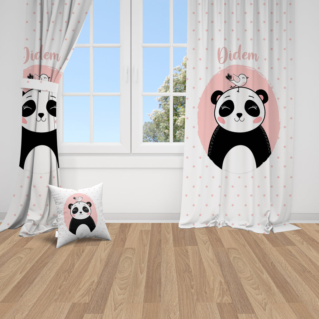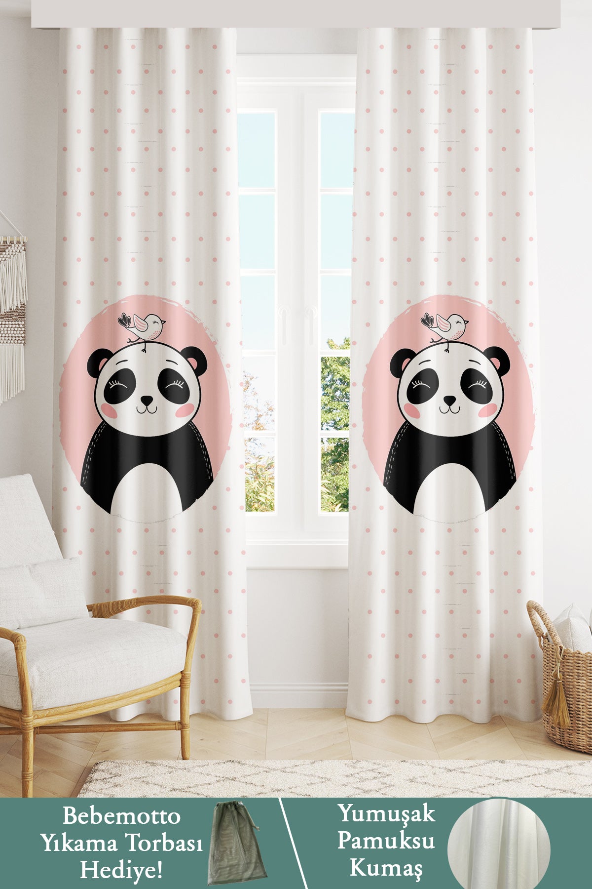 Panda ve Kuş, İthal Kumaş, Çocuk ve Bebek Odası Fon Perde - 2 Kanat - 70*150 Tekrar sipariş verilir ve stokta yoksa gönderilir