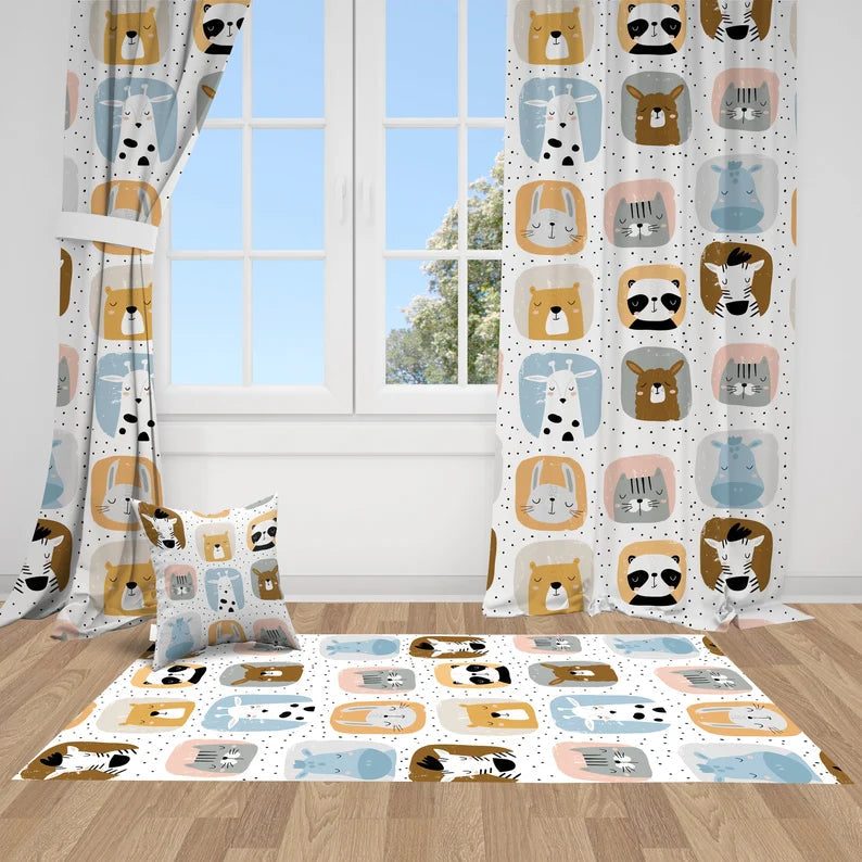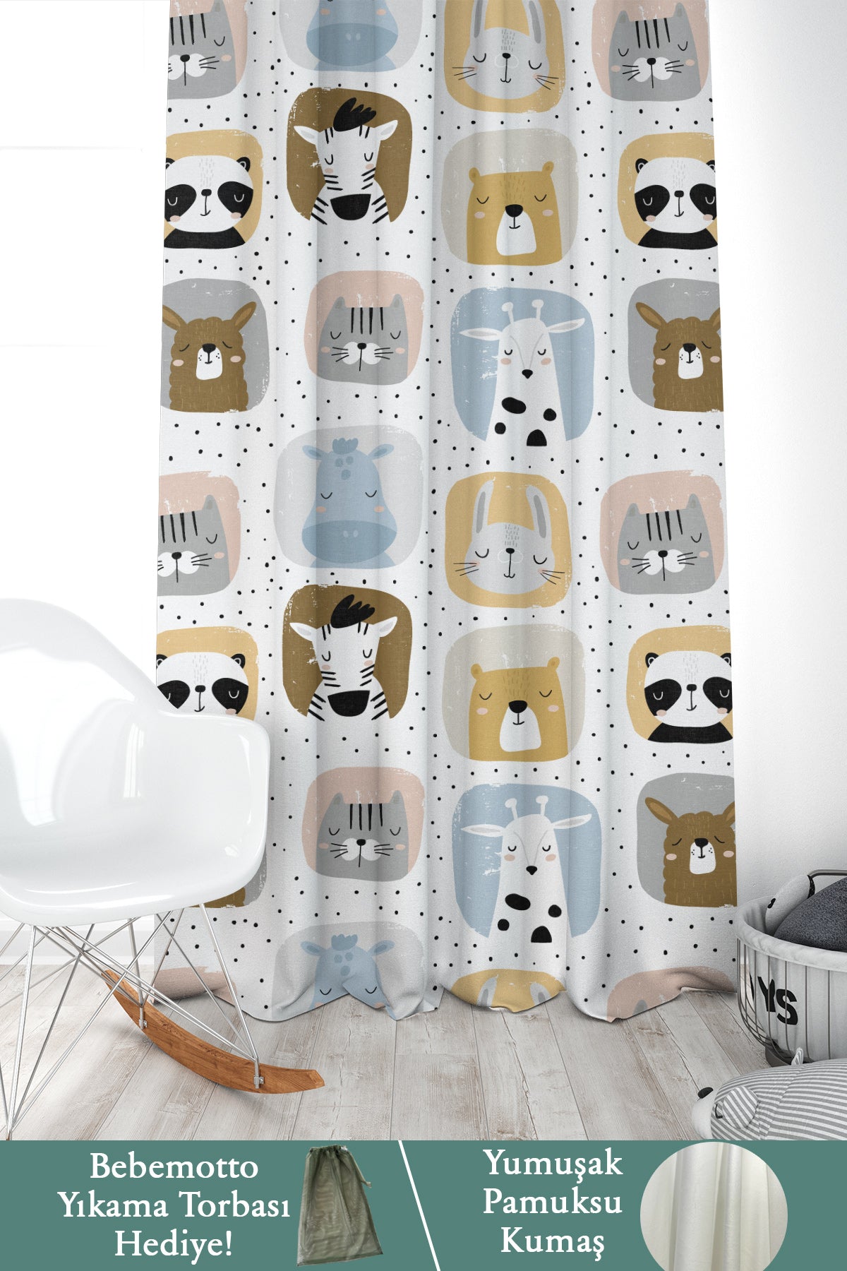 Sevimli Safari Hayvanları 2, İthal Kumaş, Çocuk ve Bebek Odası Fon Perde - 2 Kanat - 70*150 Tekrar sipariş verilir ve stokta yoksa gönderilir