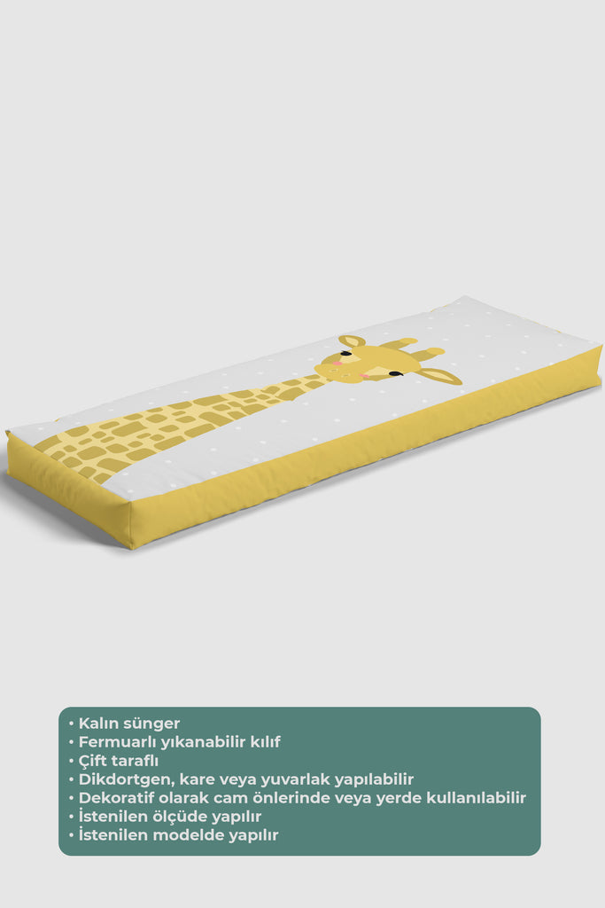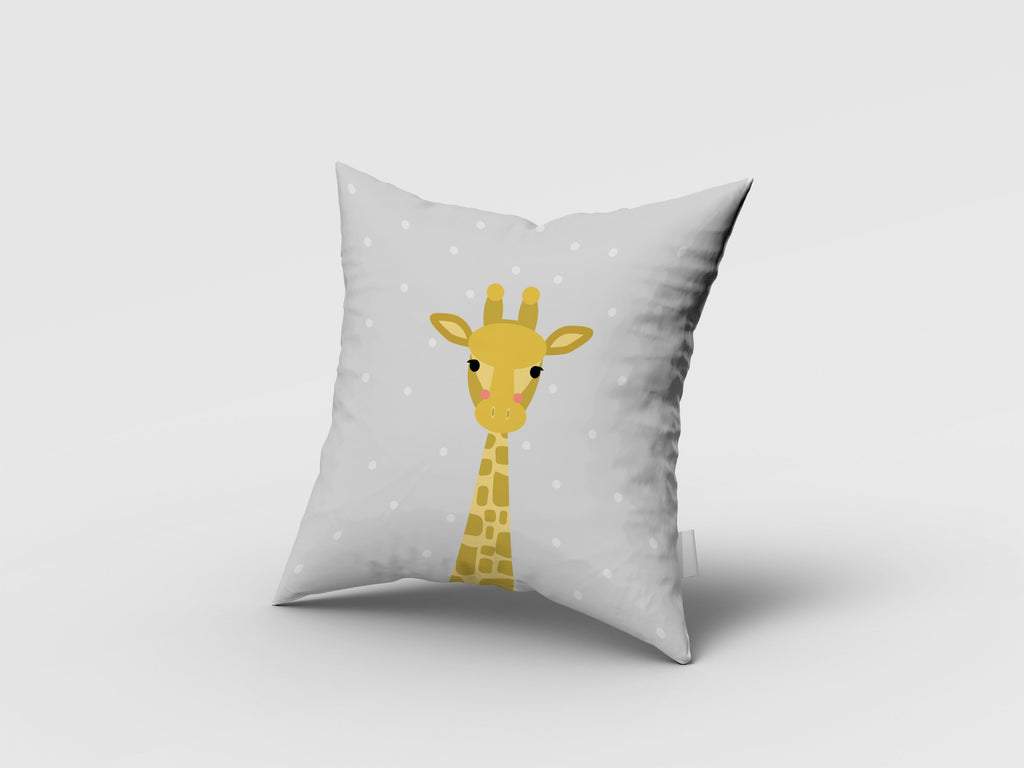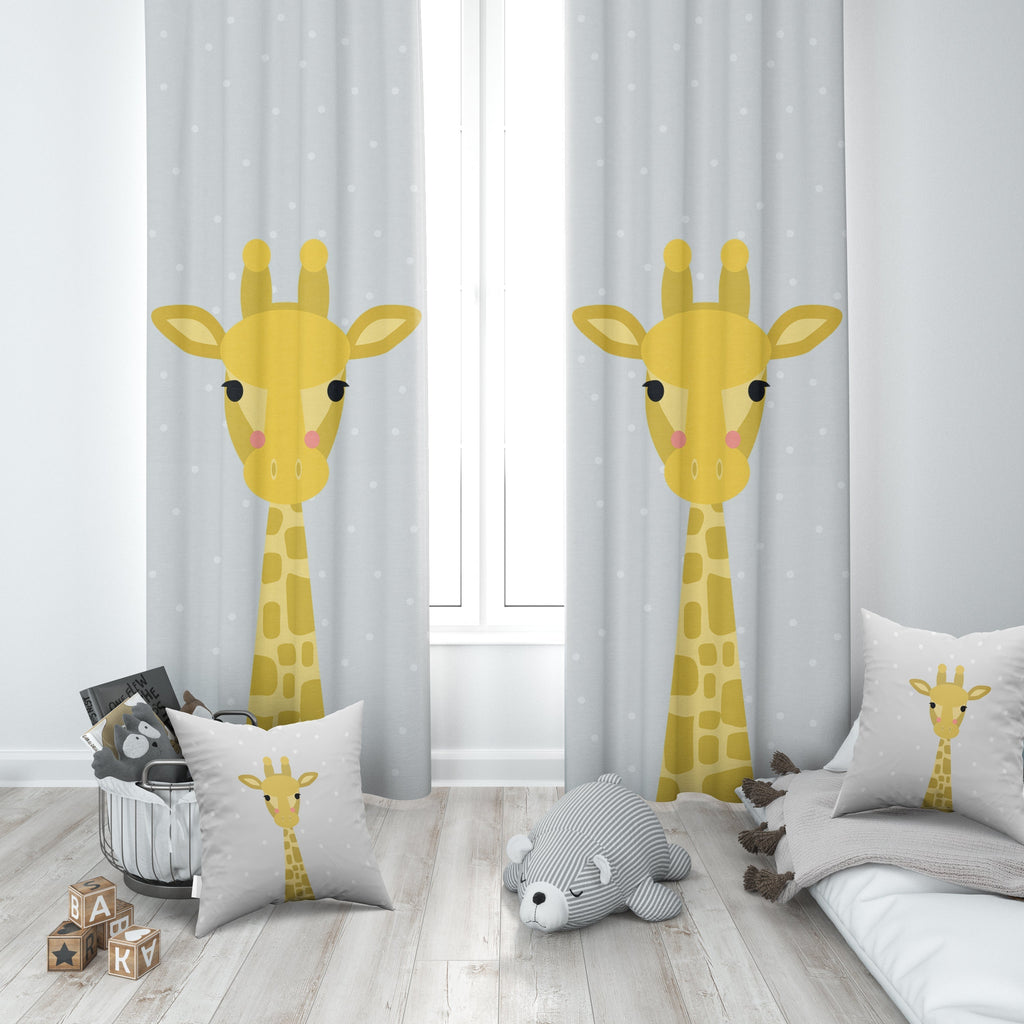 Sevimli Zürafalar, Gri, İthal Kumaş, Çocuk ve Bebek Odası Fon Perde - 2 Kanat