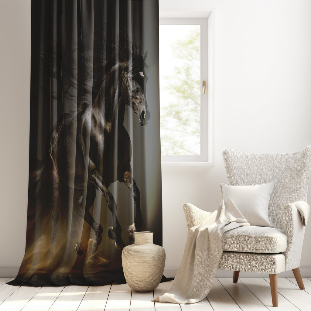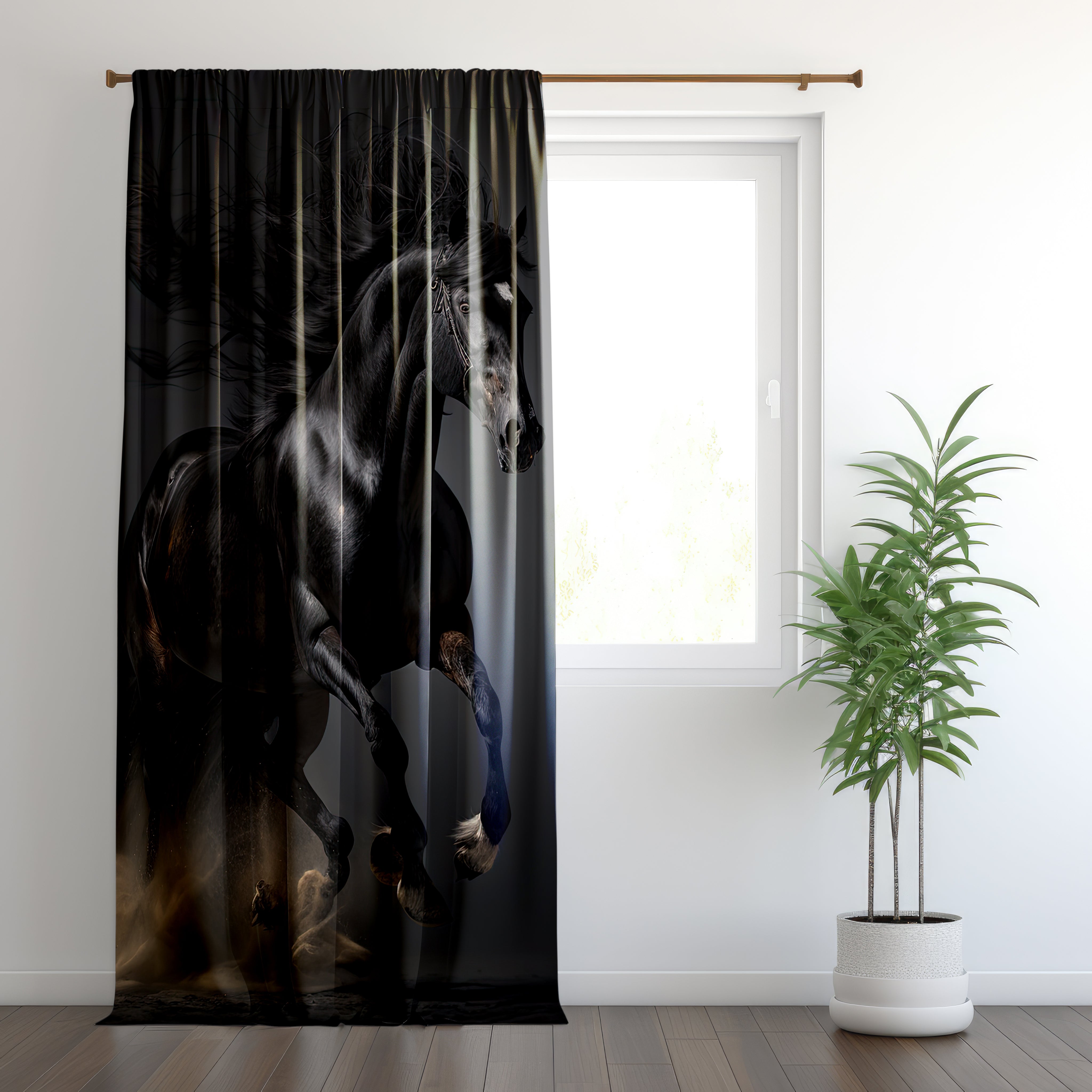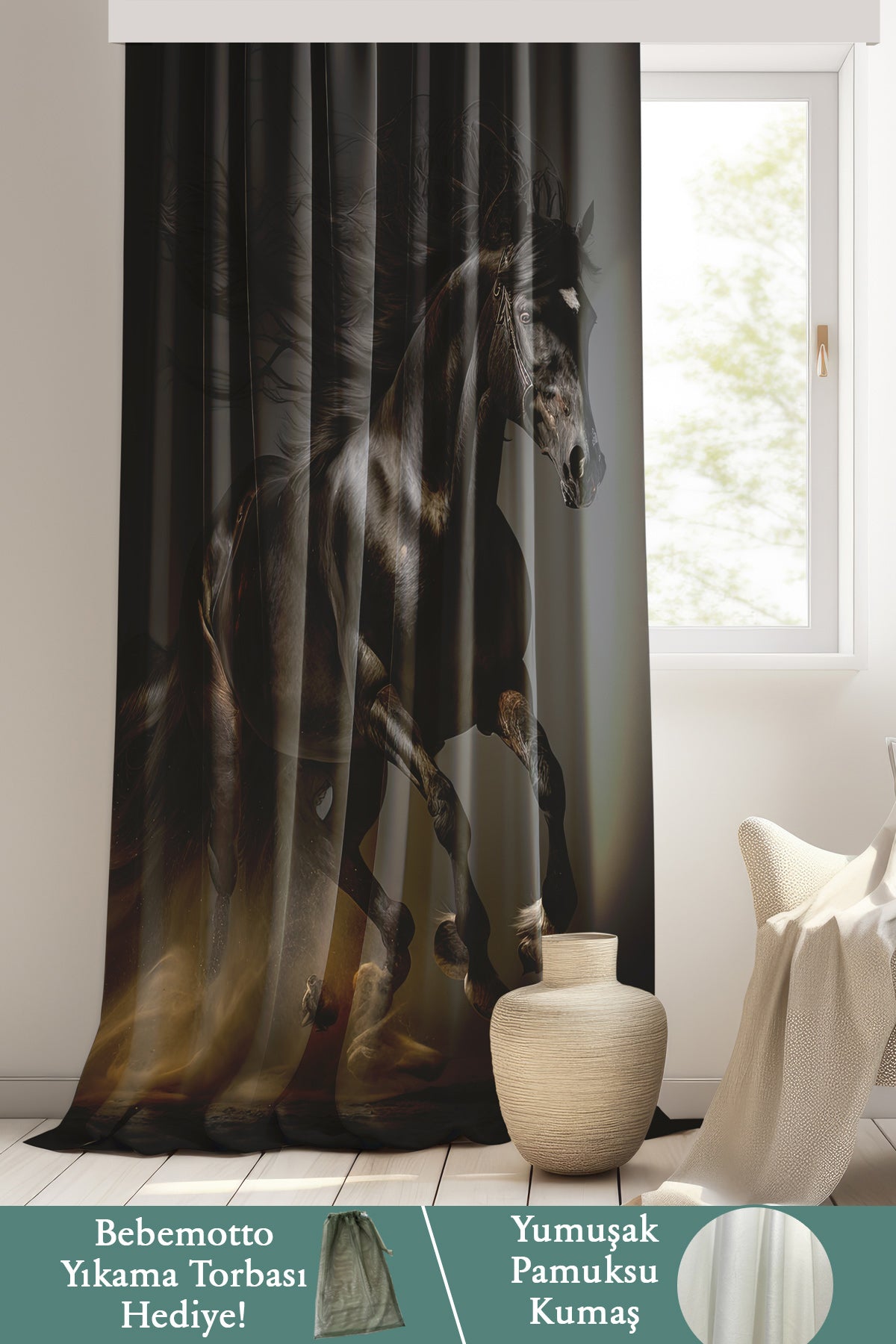 Siyah At, Asil, İthal Kumaş, Dekoratif Perde - Tek Kanat