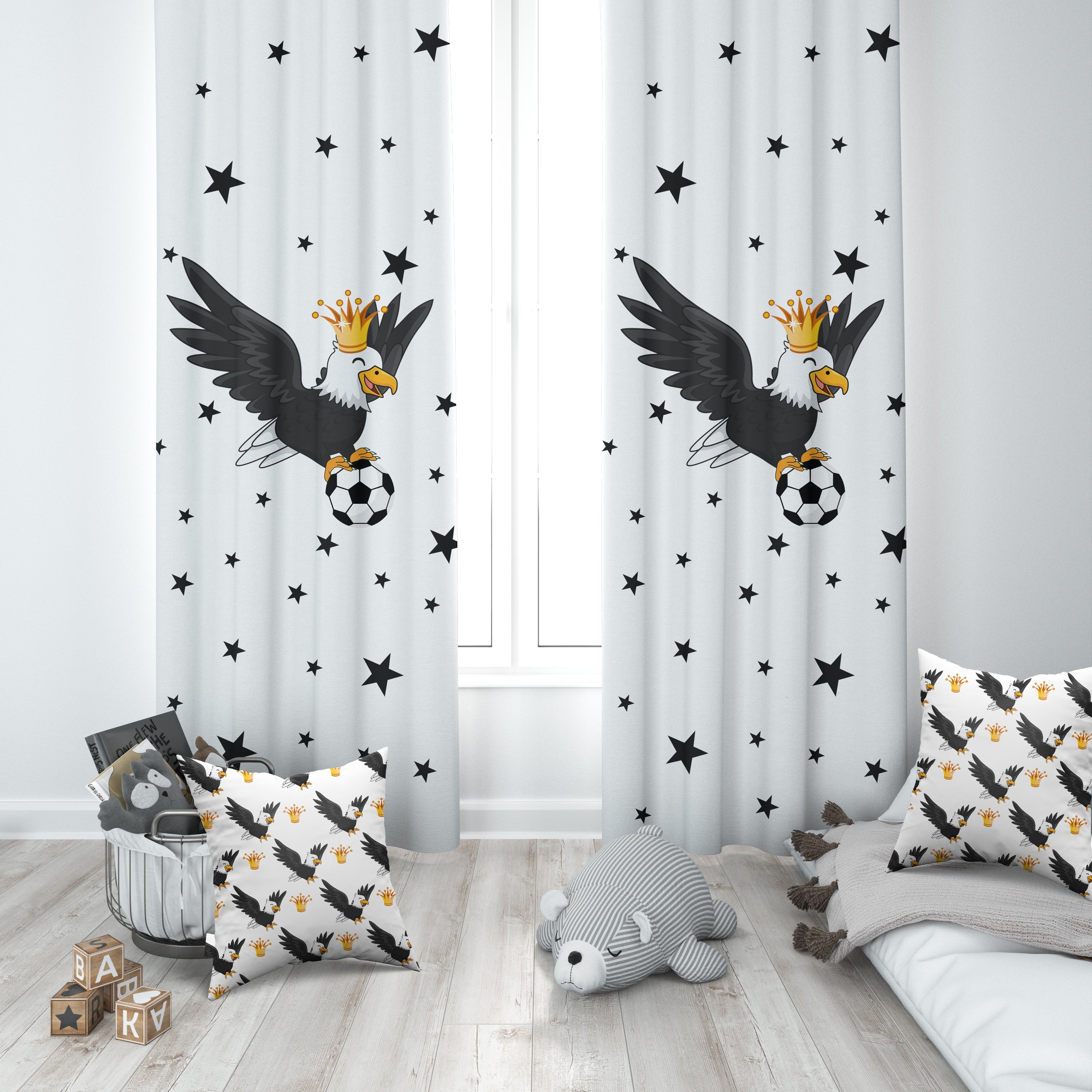 Siyah Beyaz, Kartal, İthal Kumaş, Çocuk ve Bebek Odası Fon Perde - 2 Kanat