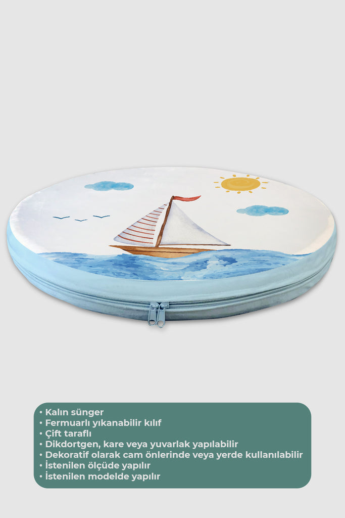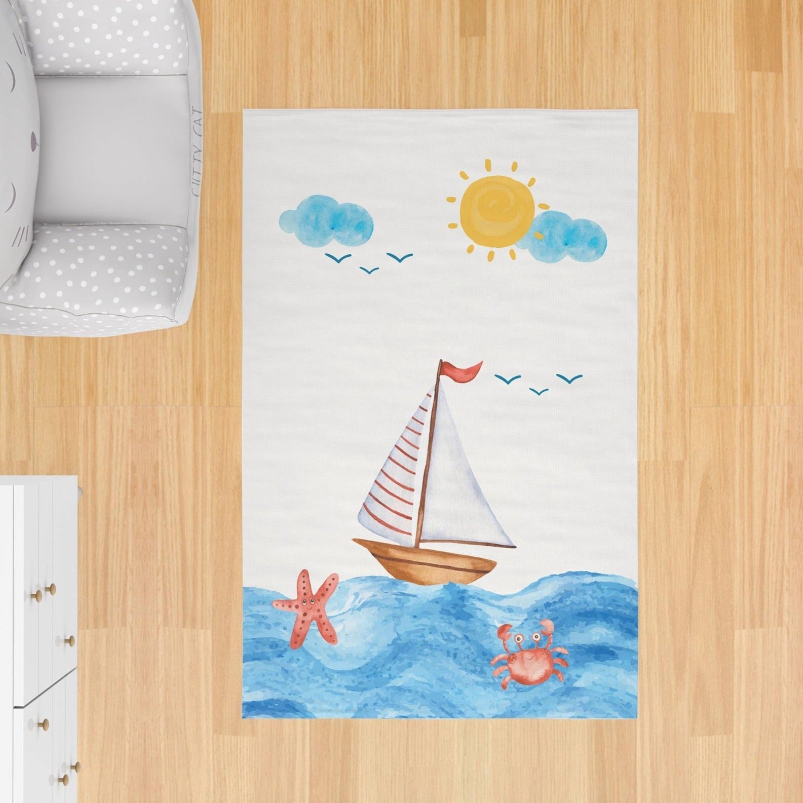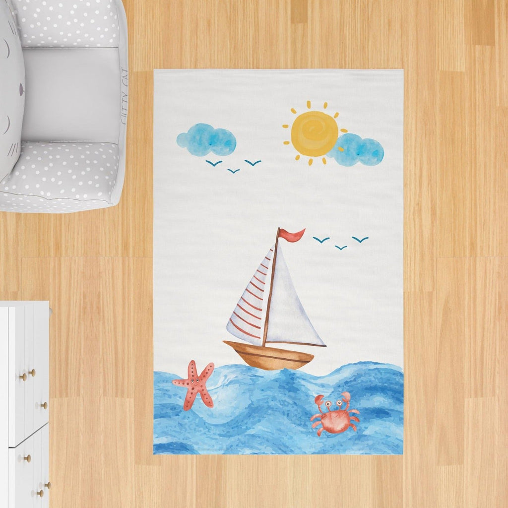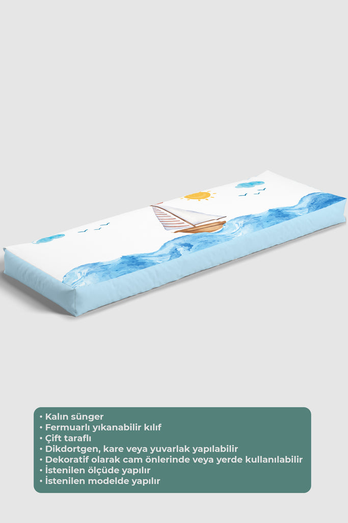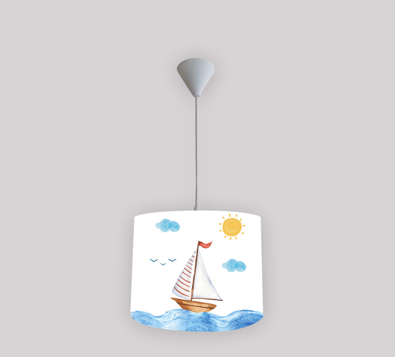 Sulu Boya Efektli, Deniz, Balina ve Gemi, İthal Kumaş, Çocuk ve Bebek Odası Fon Perde - 2 Kanat