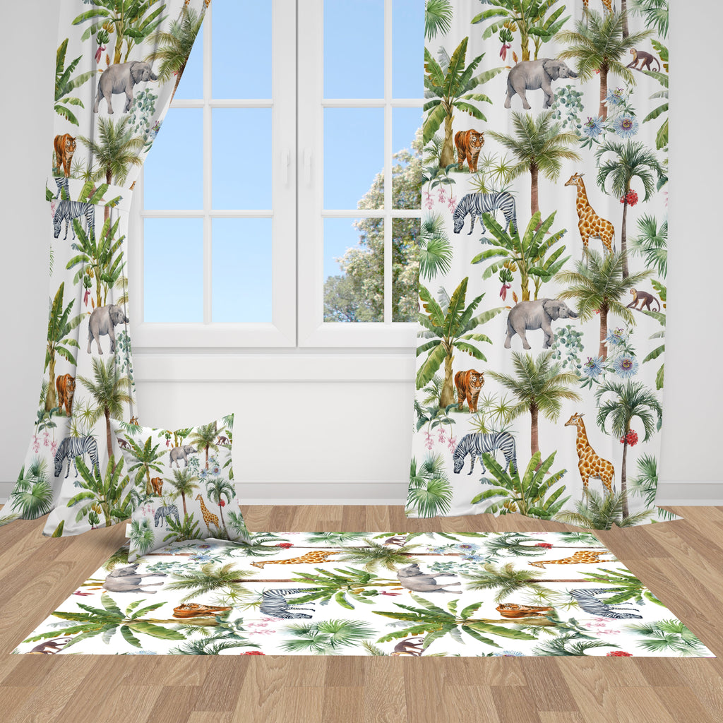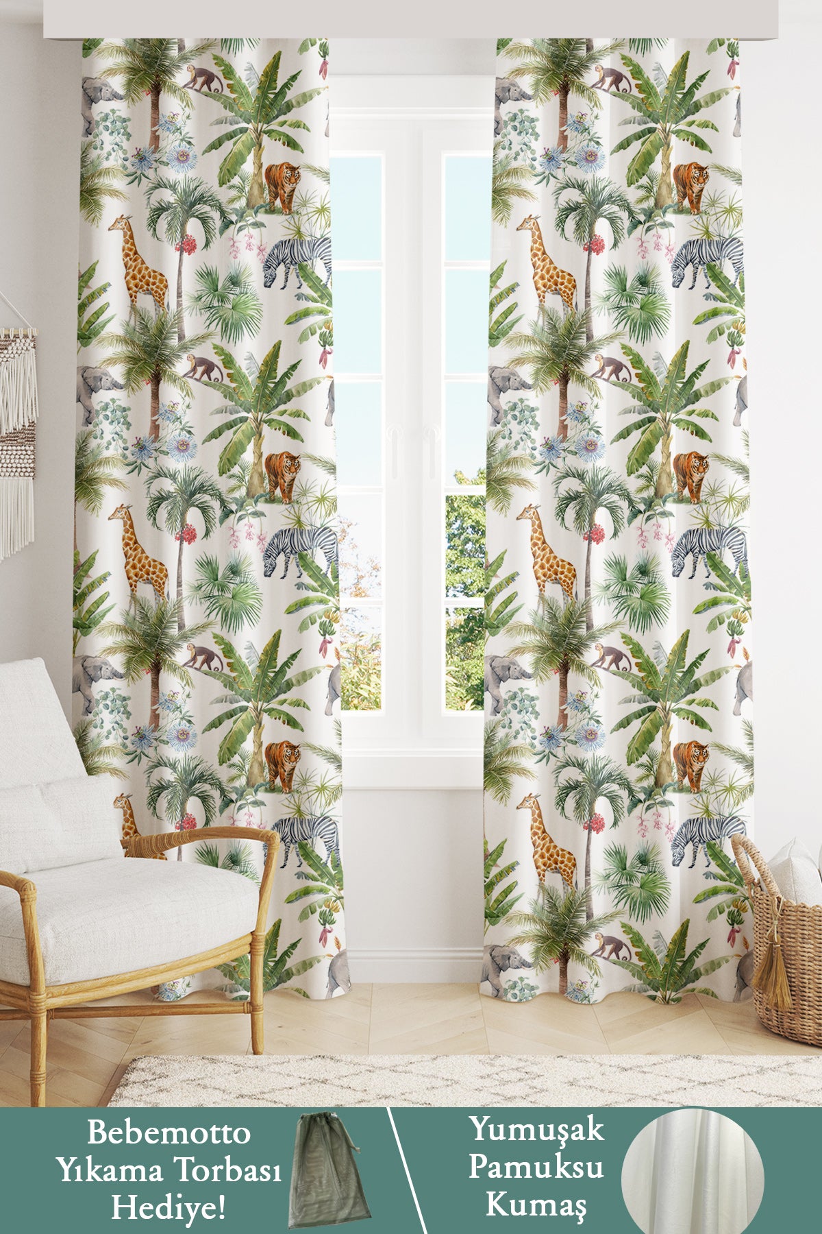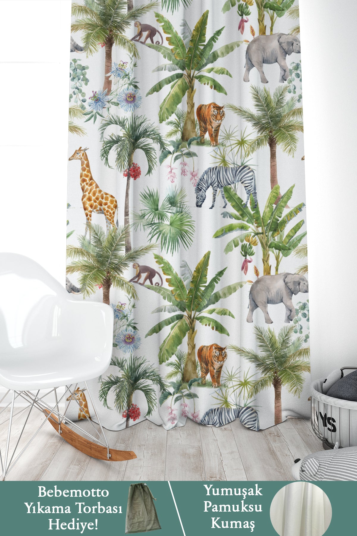 Tropikal Orman Hayvanları 2, İthal Kumaş, Çocuk ve Bebek Odası Fon Perde - 2 Kanat - 70*150 Tekrar sipariş verilir ve stokta yoksa gönderilir