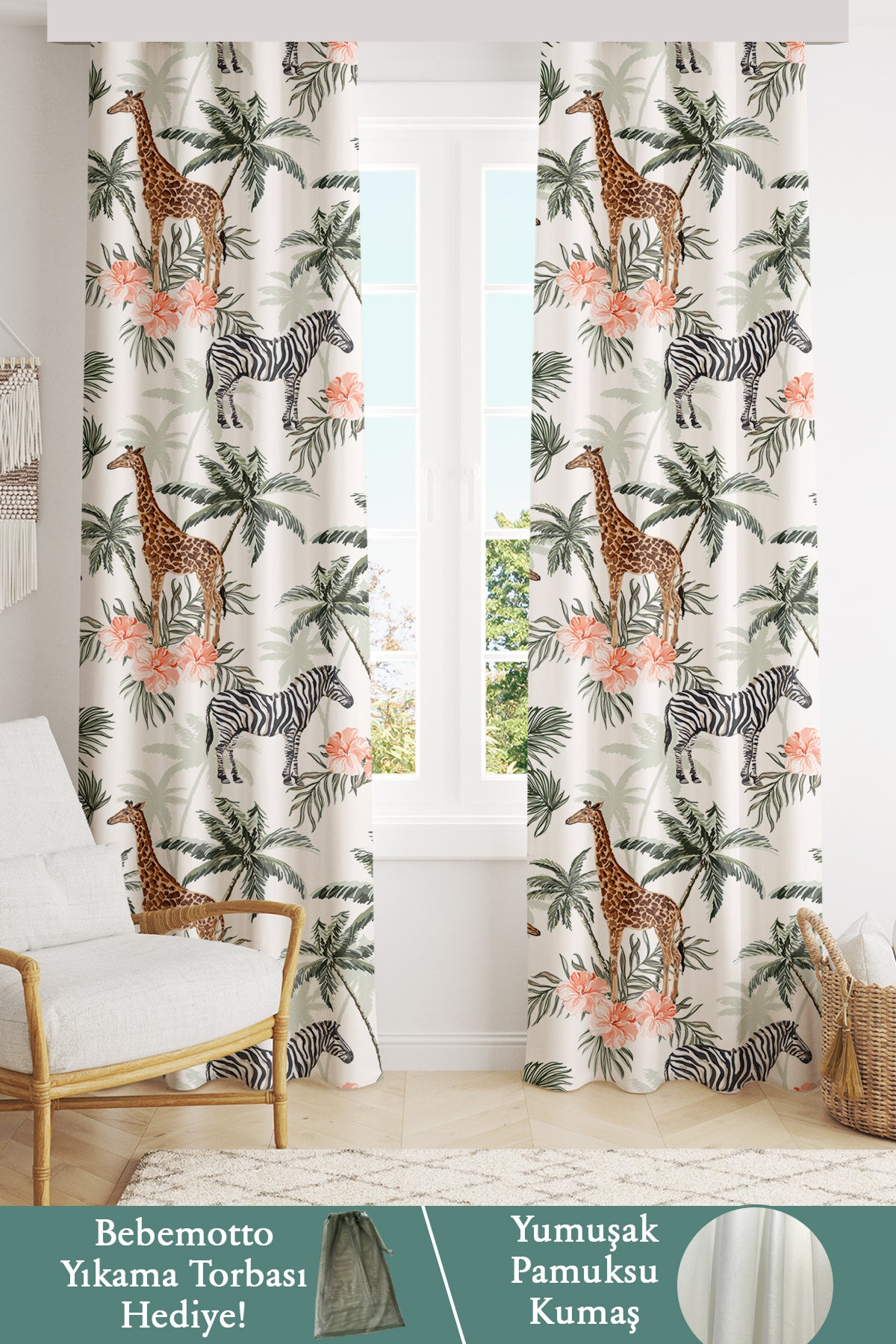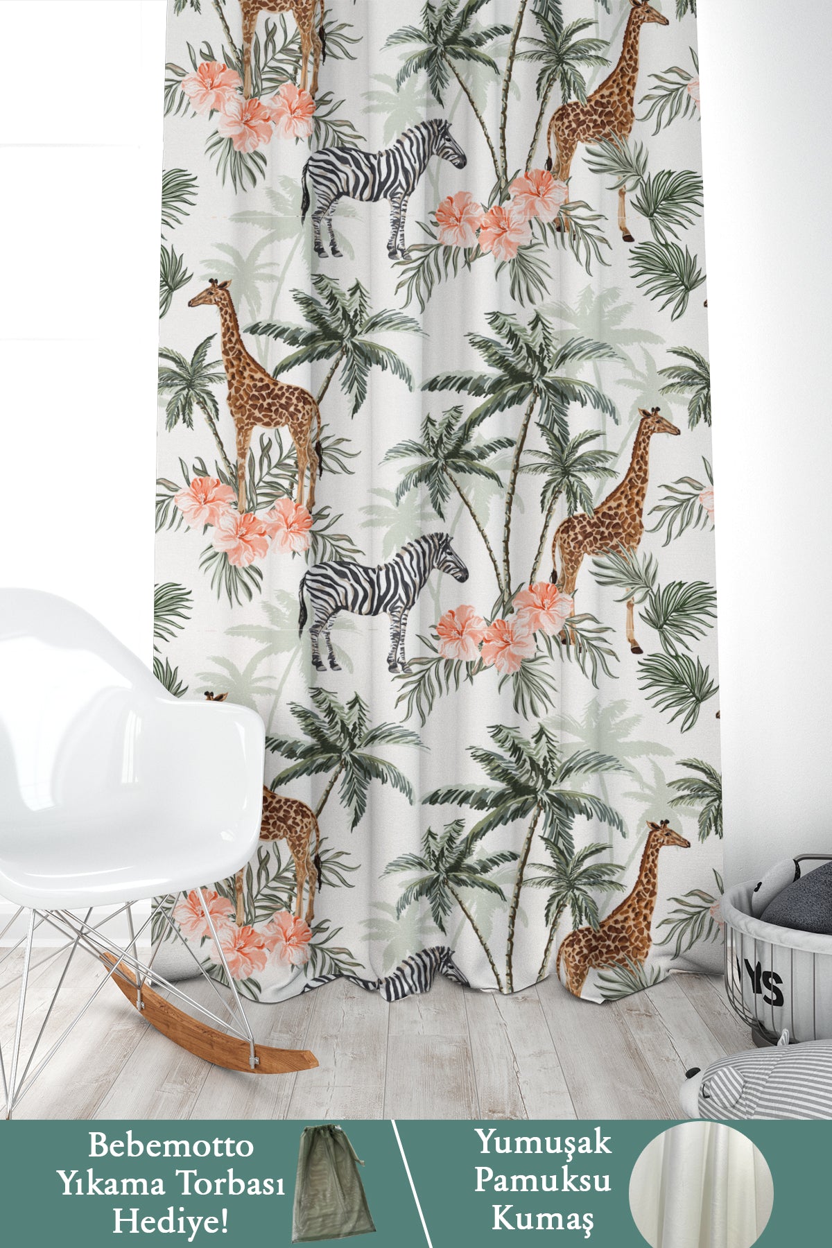 Tropikal Orman Hayvanları 1, İthal Kumaş, Çocuk ve Bebek Odası Fon Perde - 2 Kanat - 70*150 Tekrar sipariş verilir ve stokta yoksa gönderilir