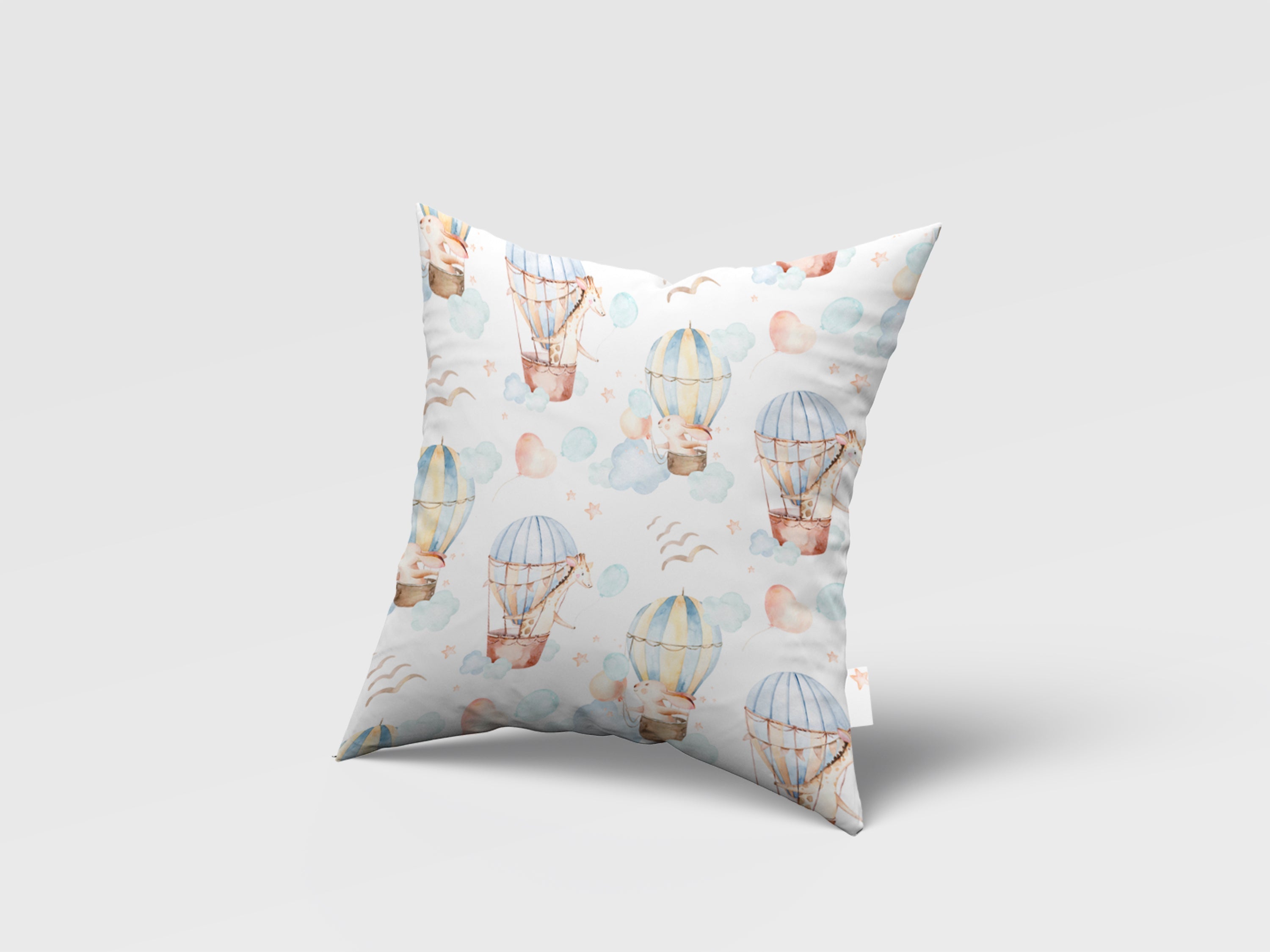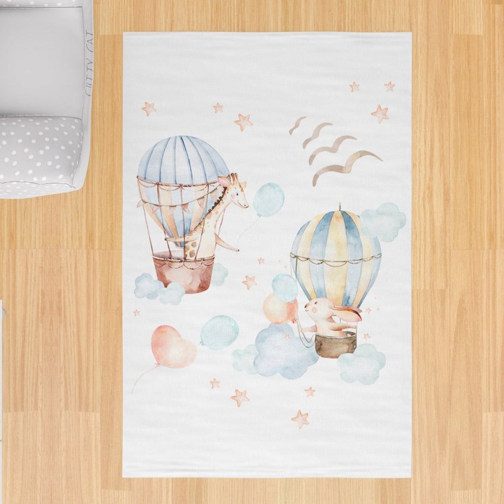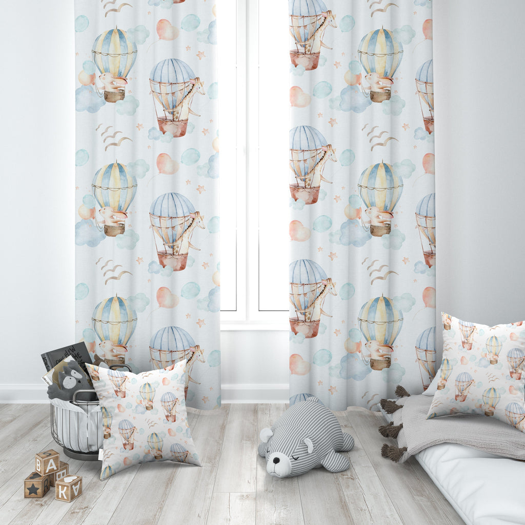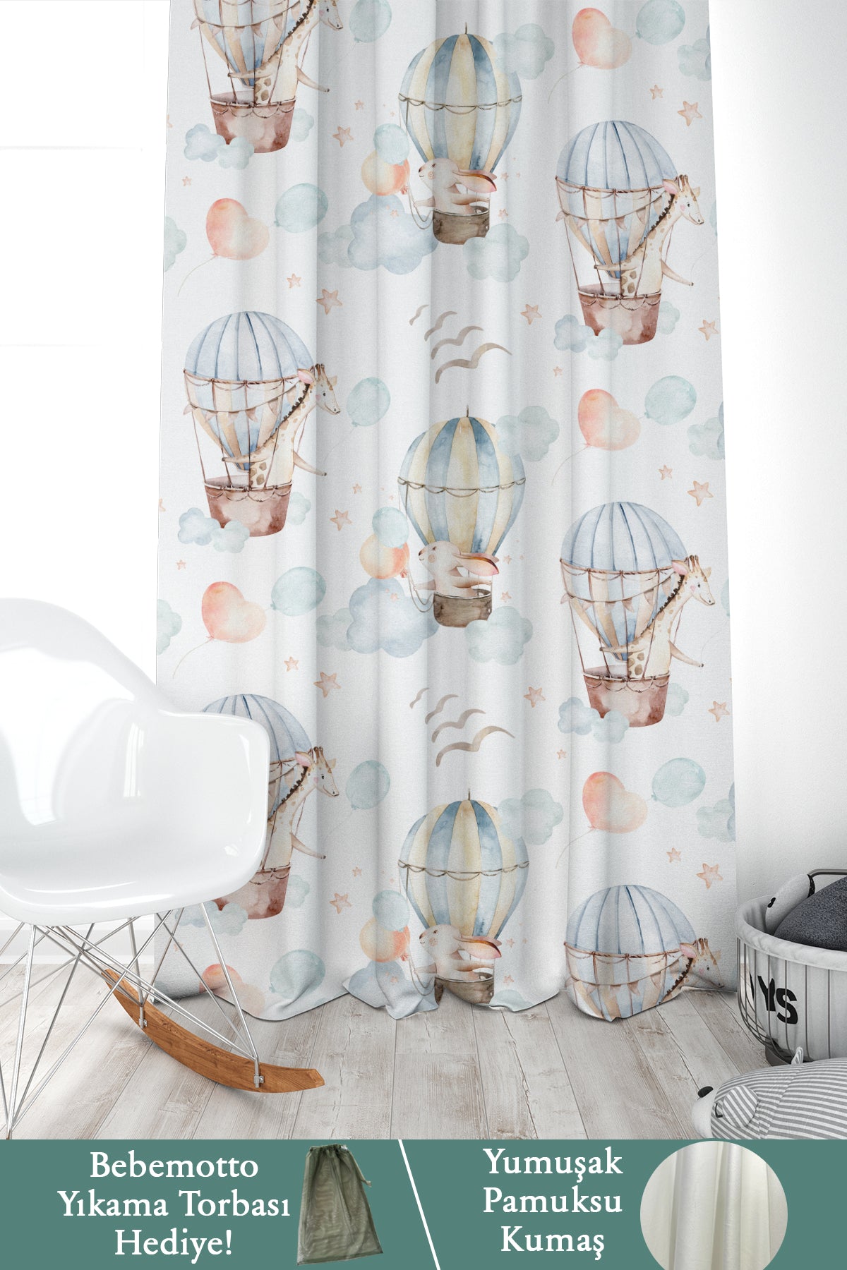 Uçan Balonda Tavşan, Zürafa, İthal Kumaş, Çocuk ve Bebek Odası Fon Perde - 2 Kanat - 70*150 Tekrar sipariş verilir ve stokta yoksa gönderilir