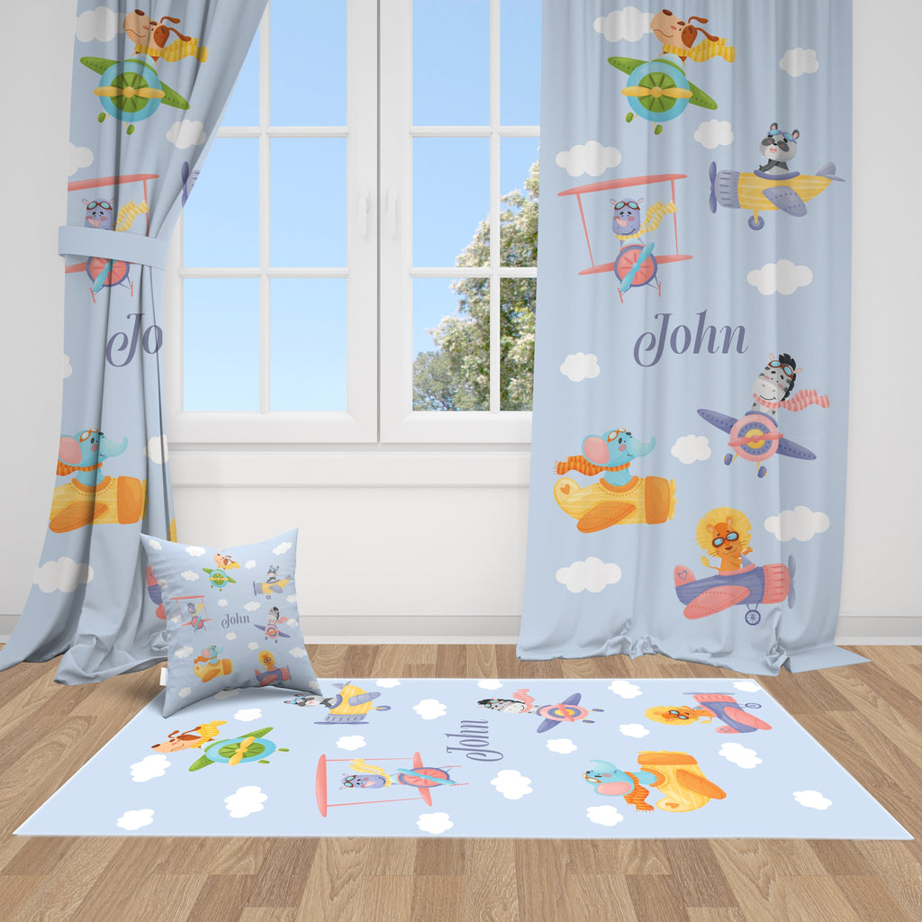 Uçan Hayvanlar, İthal Kumaş, Çocuk ve Bebek Odası Fon Perde - 2 Kanat - 70*150 Tekrar sipariş verilir ve stokta yoksa gönderilir