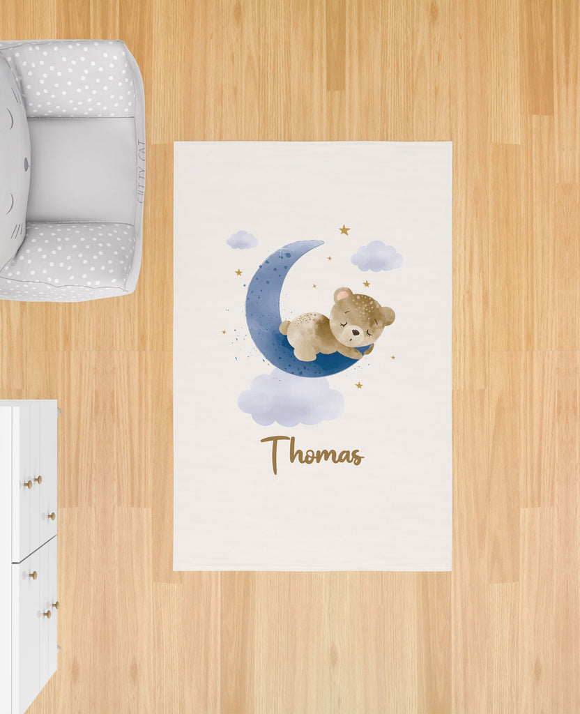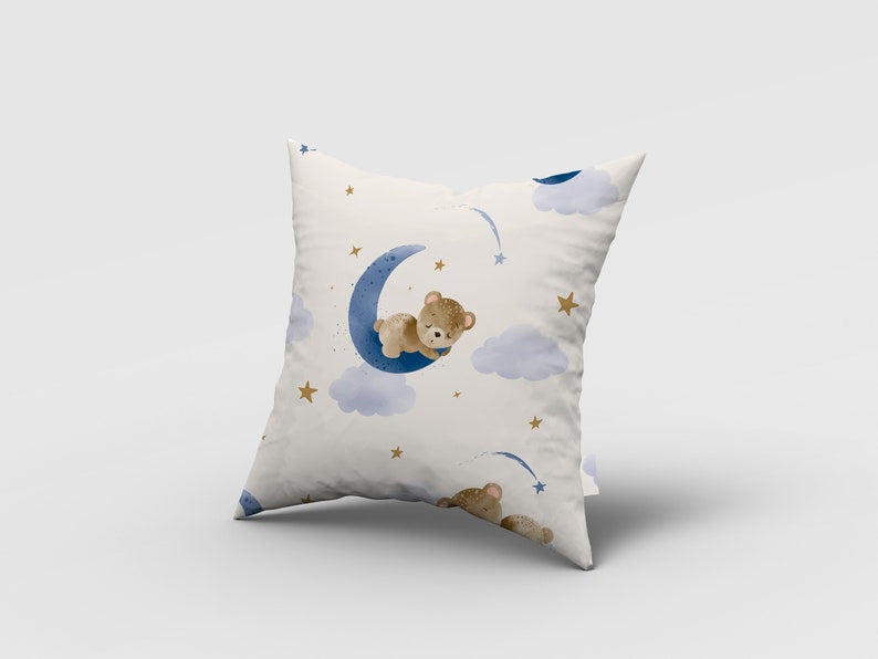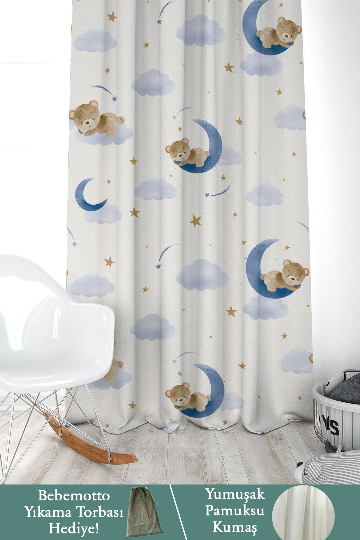 Uyuyan Ayı, Mavi, İthal Kumaş, Çocuk ve Bebek Odası Fon Perde - 2 Kanat - 70*150 Tekrar sipariş verilir ve stokta yoksa gönderilir