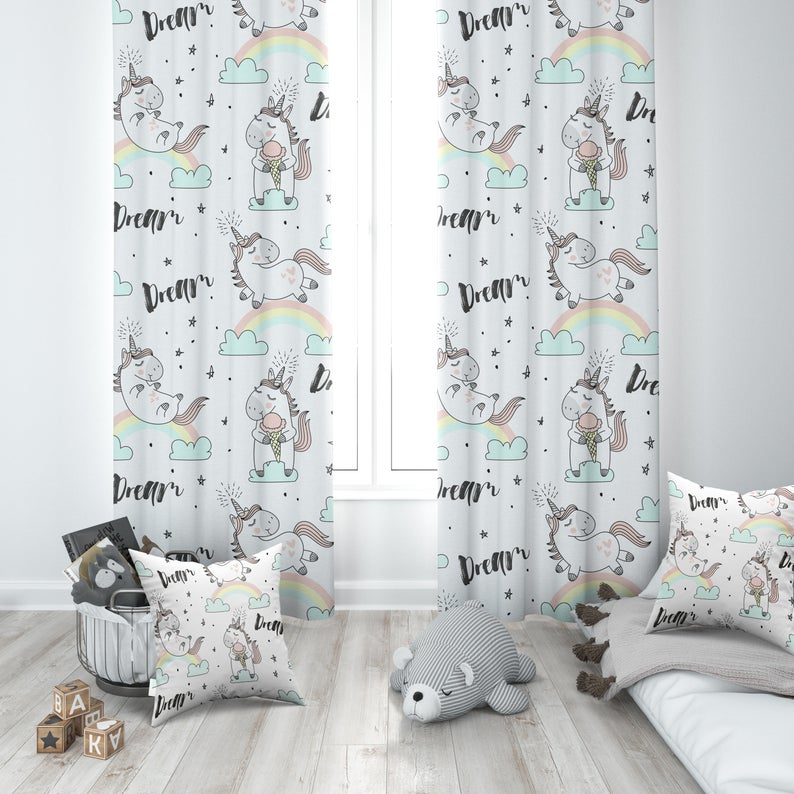 Uyuyan Unicorn, İthal Kumaş, Çocuk ve Bebek Odası Fon Perde - 2 Kanat - 70*150 Tekrar sipariş verilir ve stokta yoksa gönderilir