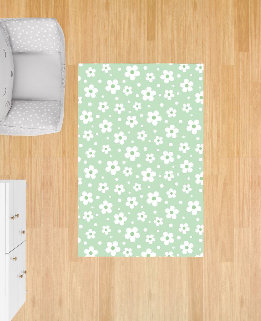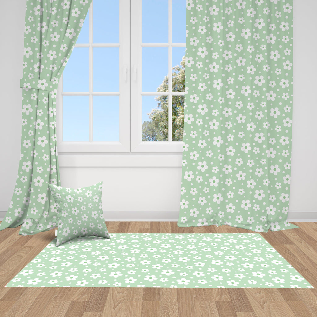 Yeşil Çiçekler, İthal Kumaş, Çocuk ve Bebek Odası Fon Perde - 2 Kanat